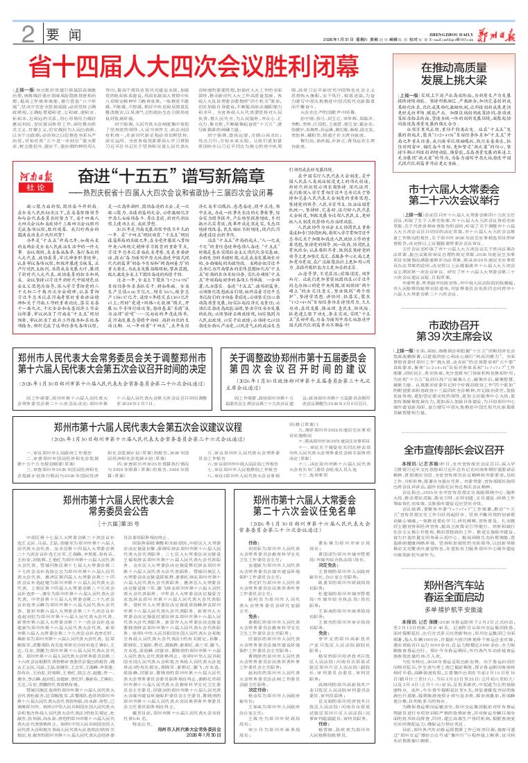 郑州市第十六届人民代表大会第五次会议建议议程