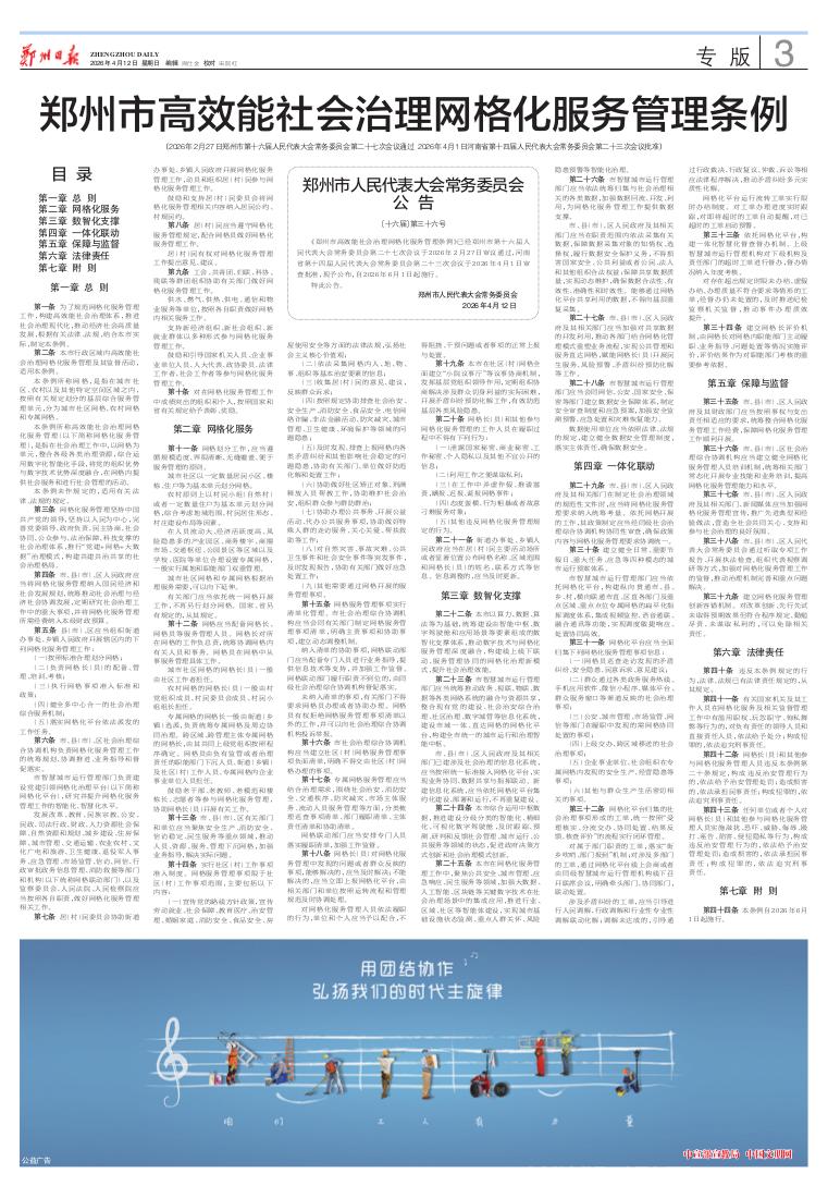 郑州市高效能社会治理网格化服务管理条例