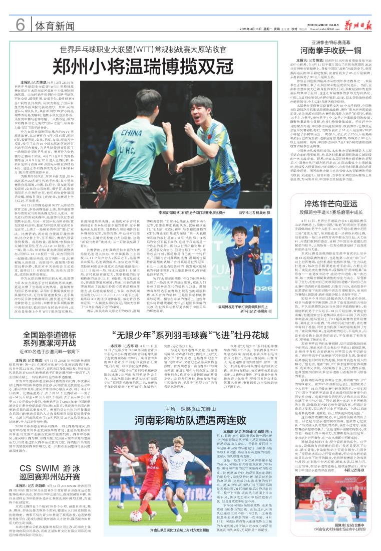 郑州小将温瑞博揽双冠